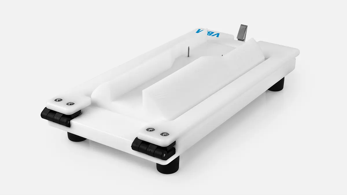 VBM developed the eFONA Trainer which is an anatomical representation of an adult neck that mimics real anatomy. The folding and locking mechanism hold the skin snugly in place and allow quick replacement of accessory parts. Learners can take a turn and perform multiple cricothyrotomies. A Fat Pad can be added under the skin to mimic subcutaneous fat or swelling.