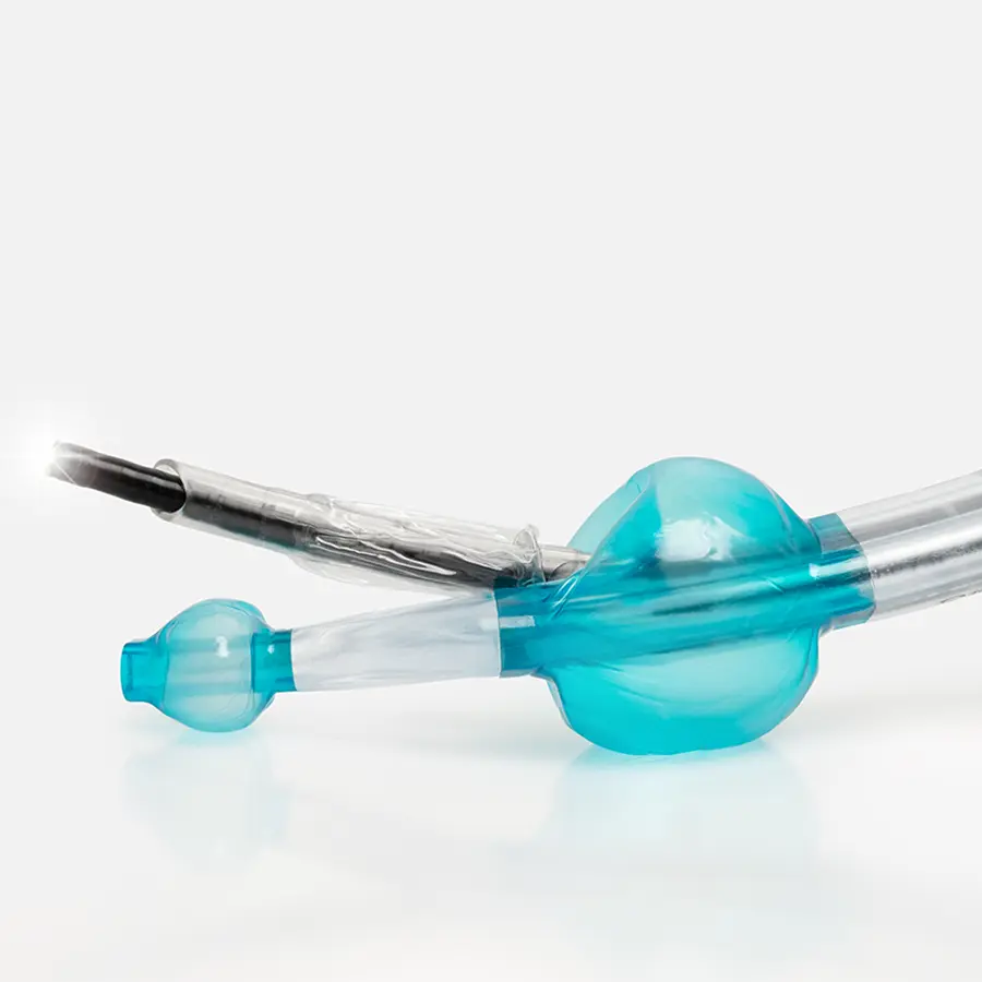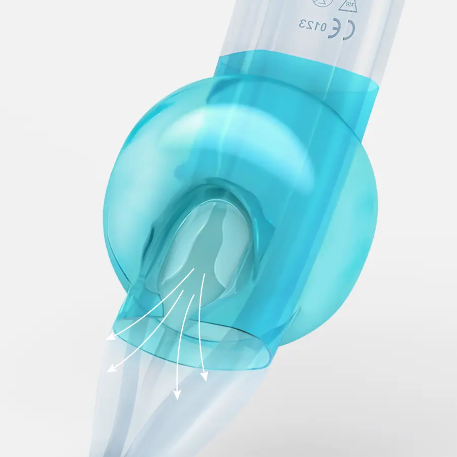 Die zwei dünnwandigen Cuffs, mit speziellen und individuellen Formen, werden gleichzeitig belüftet, um eine effiziente oropharyngeale und ösophageale Abdichtung bei niedrigem Cuffdruck zu erzielen (< 60 cm H2O).