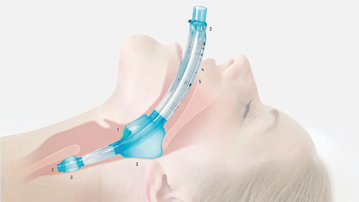 Der große Beatmungskanal ermöglicht die Passage eines herkömmlichen Trachealtubus. Die integrierte Rampe am Ende der Beatmungsöffnung lenkt den Trachealtubus in Richtung des Glottiseingangs. Es wird empfohlen, die tracheale Intubation unter fiberoptischer Führung durchzuführen.